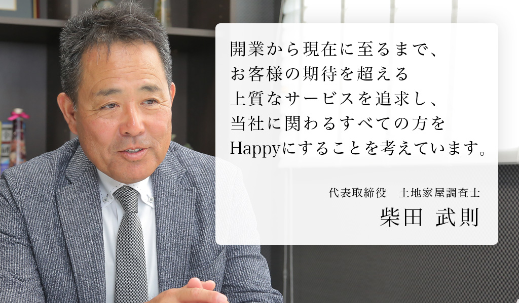 地元に根差した街づくりのサポートを展開し続けるためには、「愛される人」「信頼される人」が必要です。私たちが大きく成長できたのは、様々な人との出会いと、信頼を積み重ねてきたからこそ。開業から20余年に渡り、お客様のために誠心誠意業務を遂行し、これまで1日たりとも気を抜いたことはありません。これからもお客様にとって、より良いパートナーとなり、より多くのハッピーを創造することを目指してまいります。